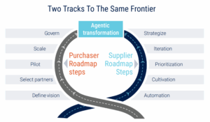 Supplier team evolution must accompany—or even lead—purchaser stakeholders via the supplier’s discovery, experimentation, and achievements using AI agents. The best suppliers will initiate conversations, help provide vision, and chase answers to difficult questions in order to help realize the vision of agentic AI. Both purchasers and suppliers should apply their experience and help create and improve AI agents and systems to increase agent productivity over time.